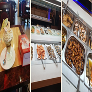 Les clients apprécient le buffet à volonté, rempli de plats variés.